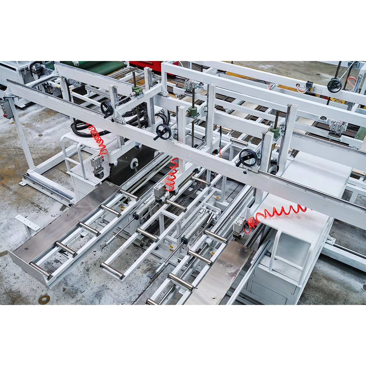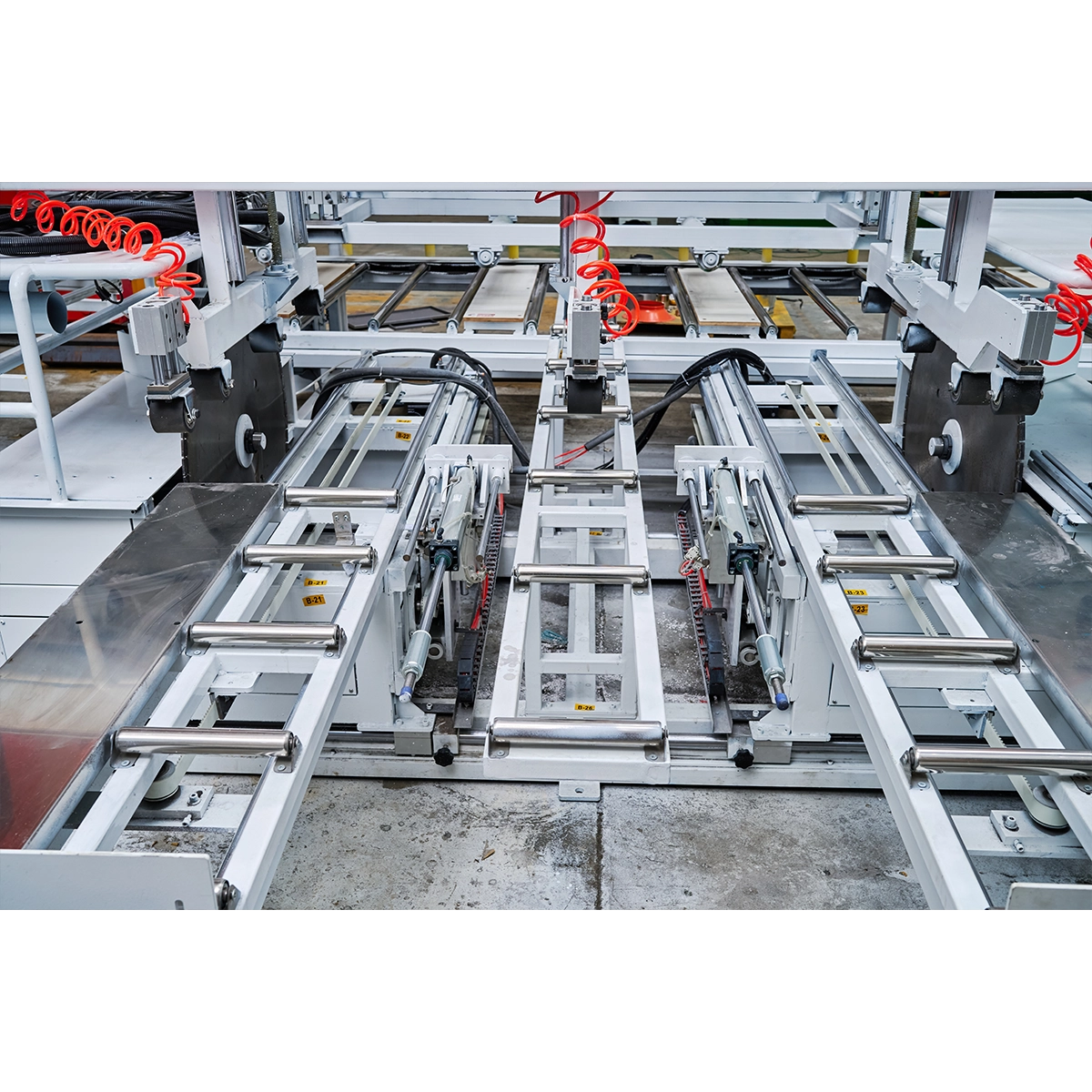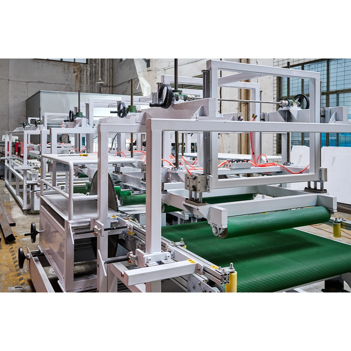 The GB-OTDJ400 Automatic Tramming Machine is a specialized equipment designed for cutting the edges of foam boards. This machine only requires placing the board on the feeding rack to achieve fully automated four-sided edge cutting.